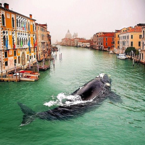 В Венецию заплыл кит. Заплутал. Народ был в восторге!